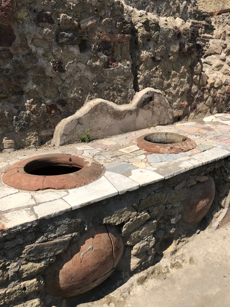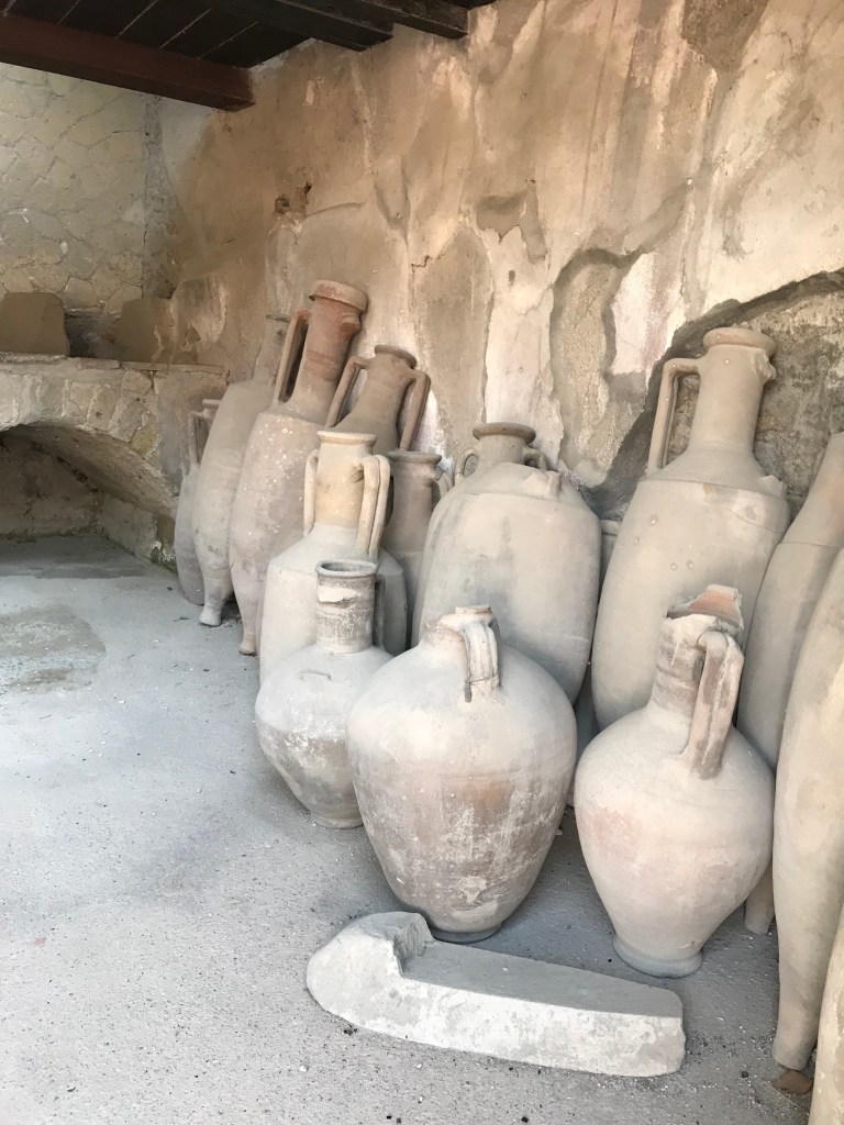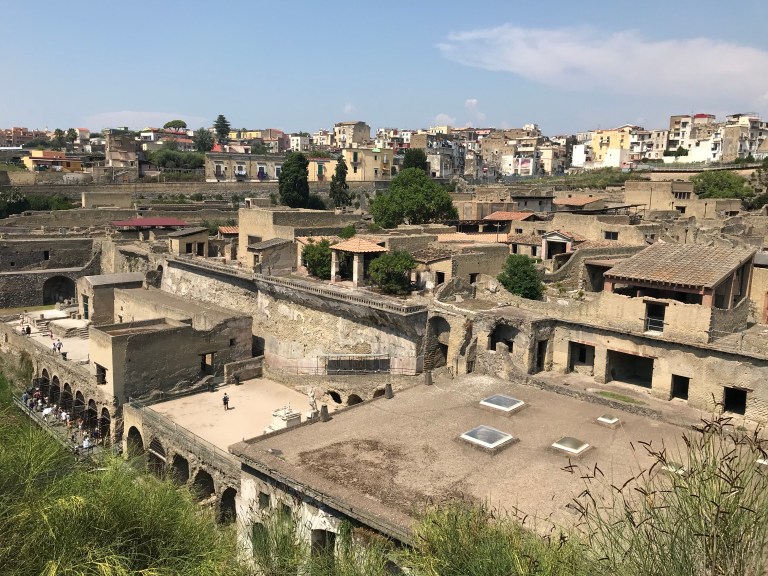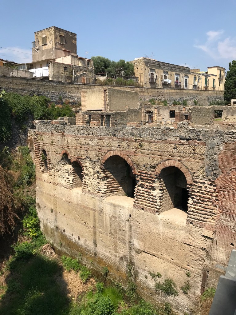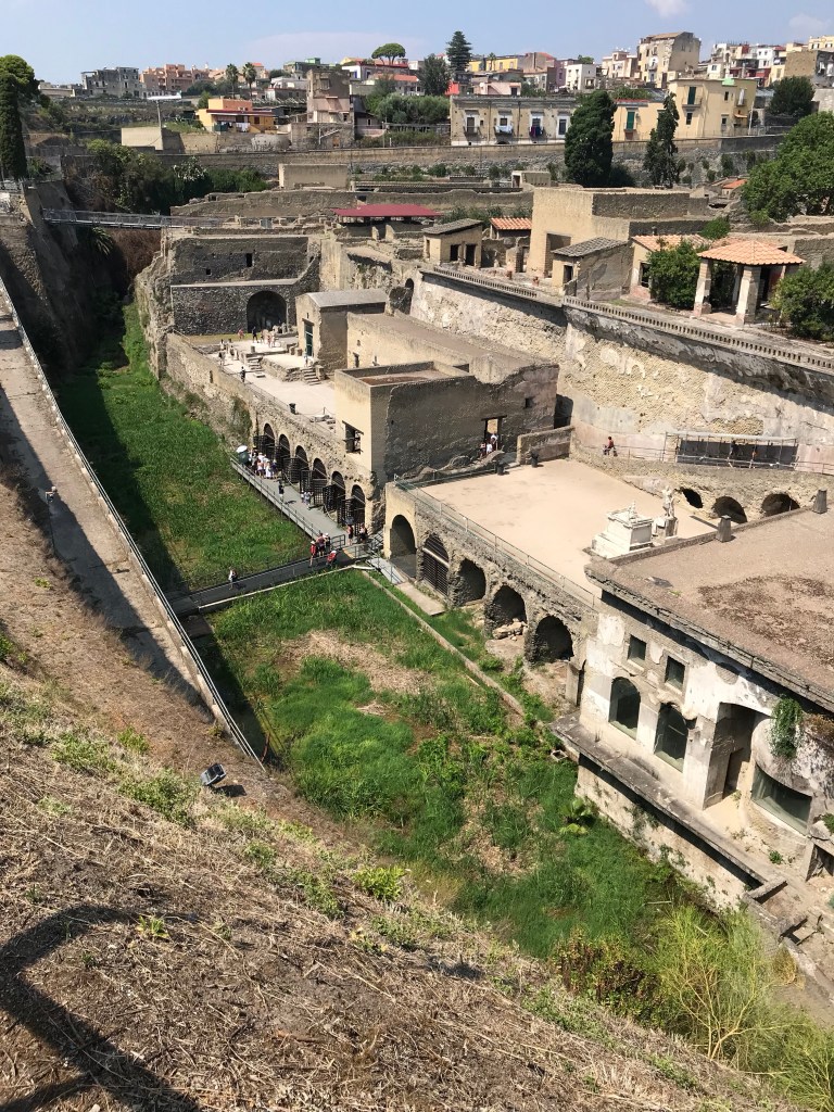 Arrived in Naples around noon then headed off on a quick drive to Herculaneum which was destroyed in 79 AD by hot mud from the eruption of Mount Vesuvius. I had been to Pompeii years ago. Herculaneum is a smaller, lesser known place but has much more intact buildings than Pompeii.