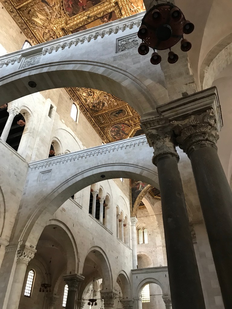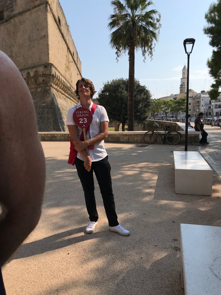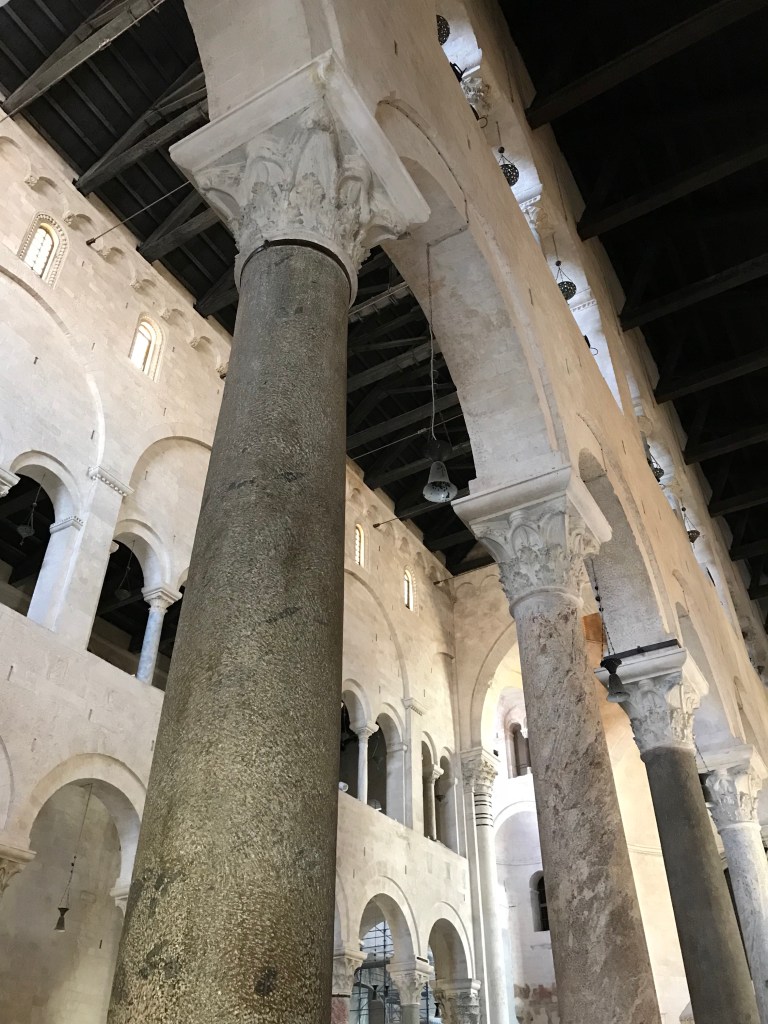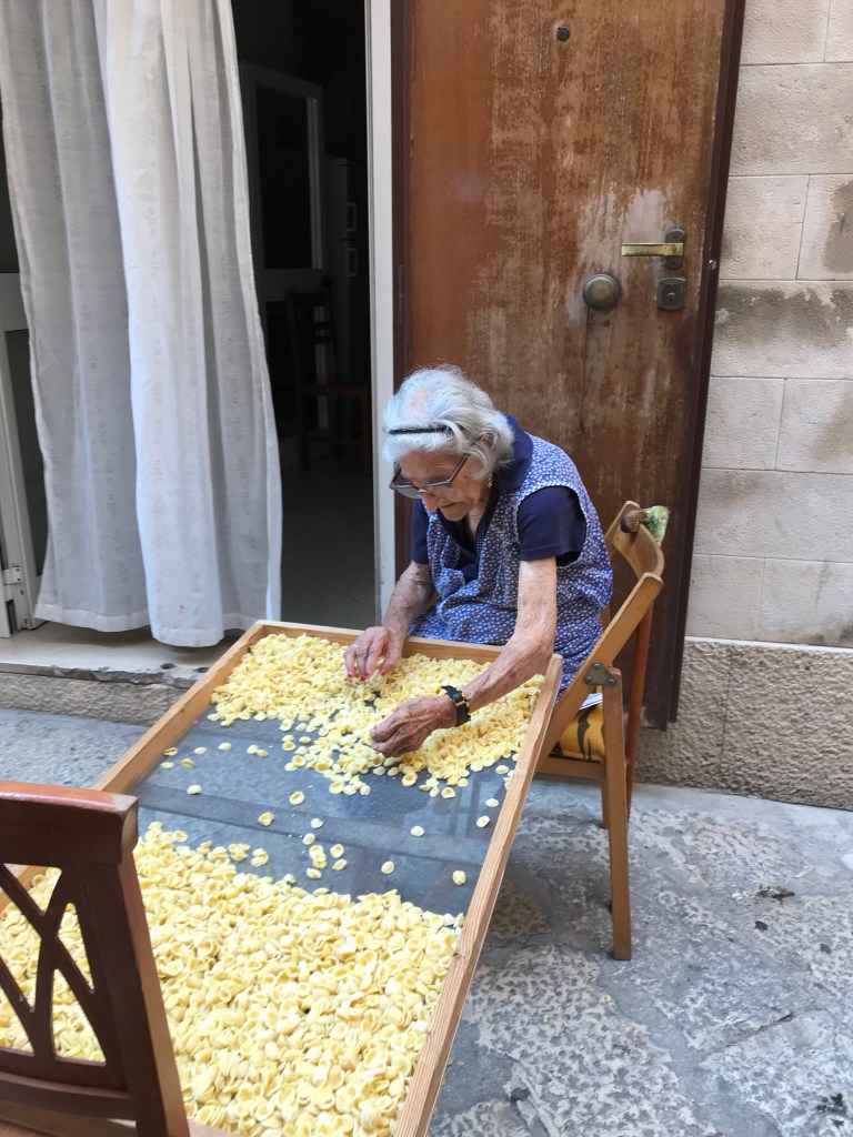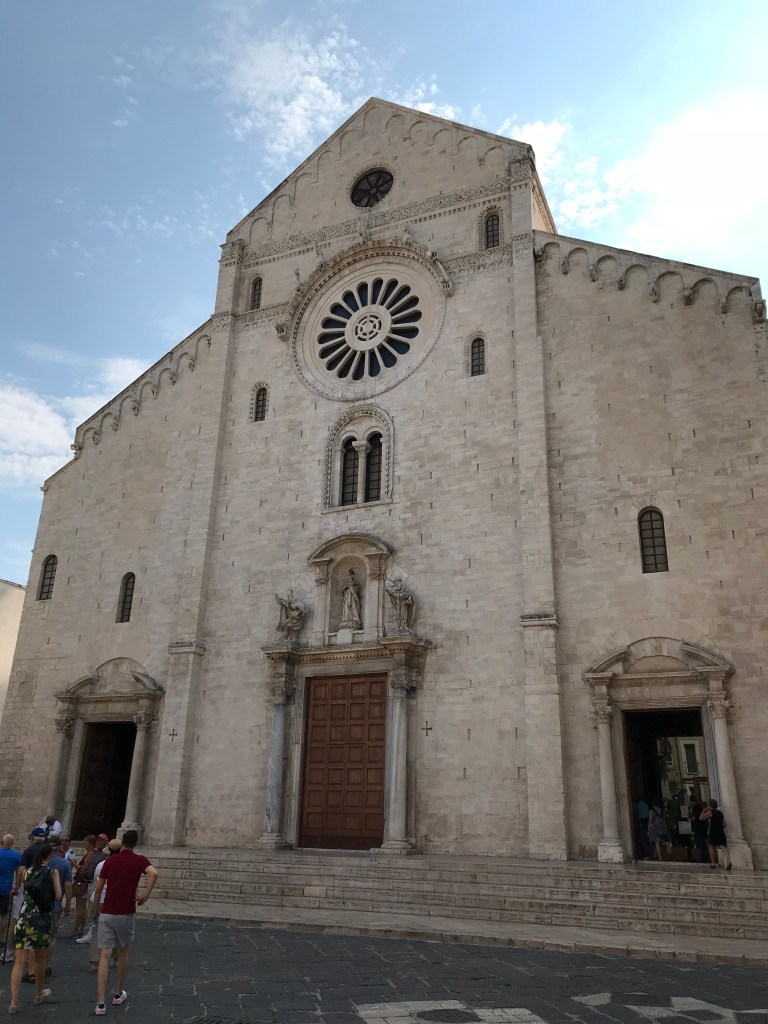 So today we set off on a walking tour that covered a church, a castle and a basilica. The basilica has relics of Saint Nicolas, as known as San a Claud. There was a full mass going on so we couldn’t view his body- which was ok with me. We did see a Christian martyr that was mummified- the only one apparently. We also saw a lot of “old ladies” making fresh pasta in the streets outside of their homes. Before you all think I am being rude with the old ladies comment, that is what our young Italian guide Donatello called them! Then spent the afternoon at the pool.