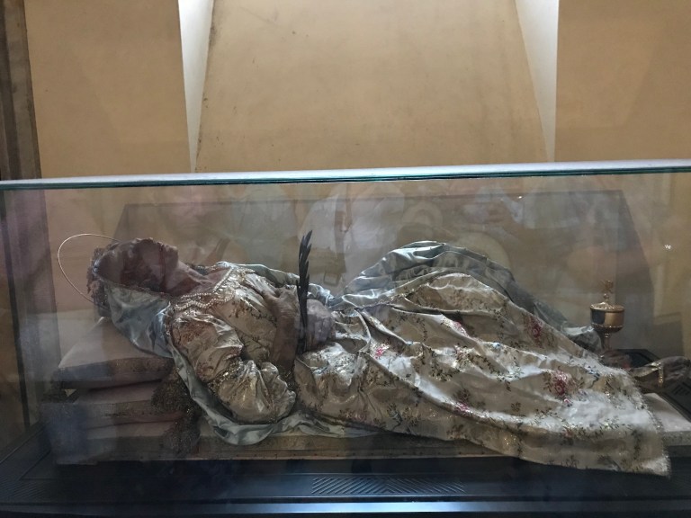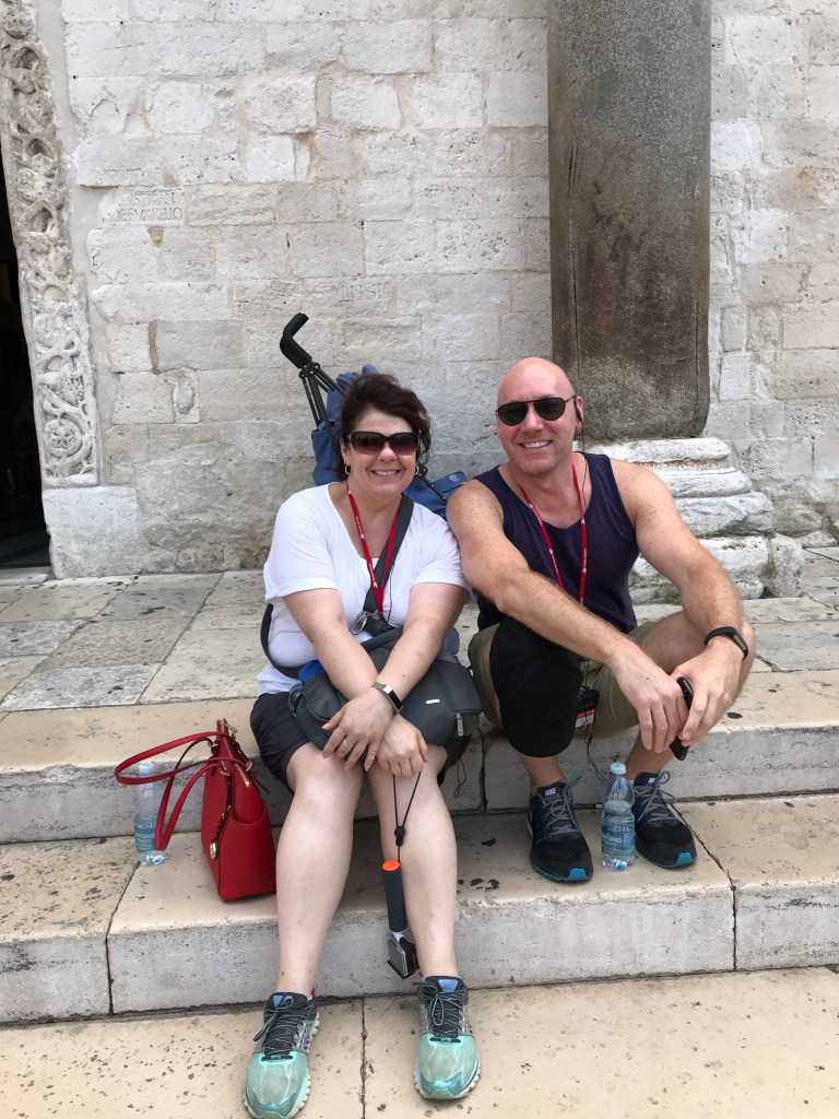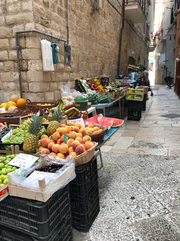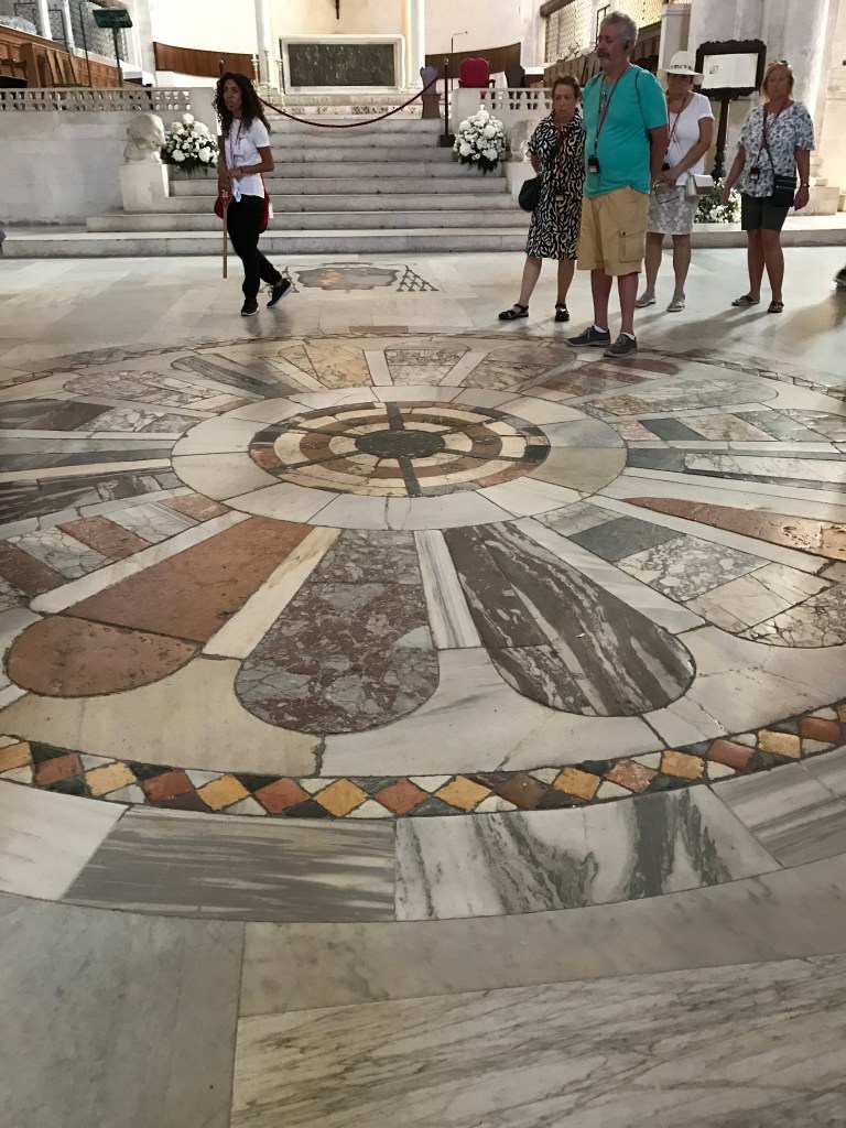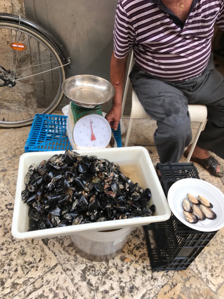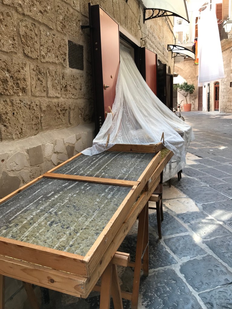 So today we set off on a walking tour that covered a church, a castle and a basilica. The basilica has relics of Saint Nicolas, as known as San a Claud. There was a full mass going on so we couldn’t view his body- which was ok with me. We did see a Christian martyr that was mummified- the only one apparently. We also saw a lot of “old ladies” making fresh pasta in the streets outside of their homes. Before you all think I am being rude with the old ladies comment, that is what our young Italian guide Donatello called them! Then spent the afternoon at the pool.