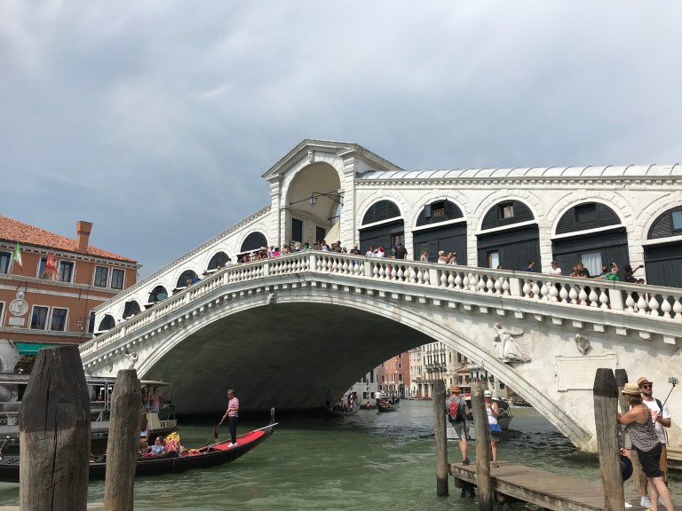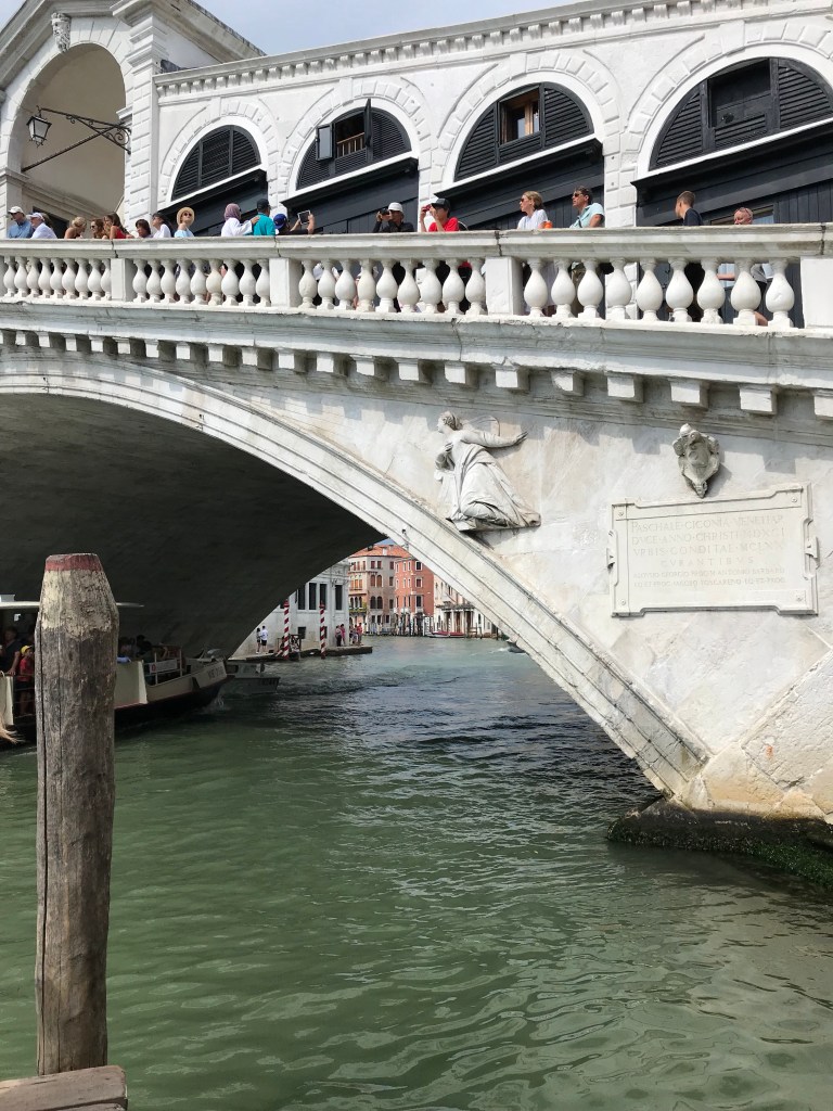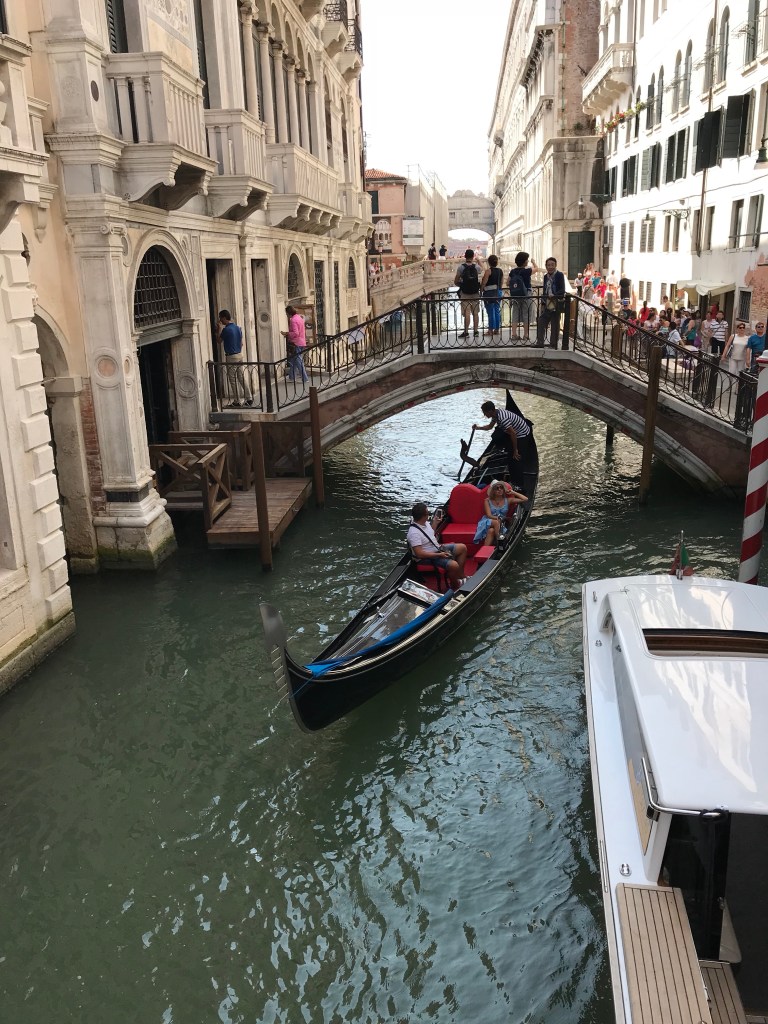 We then took another water shuttle to Murano island known for their glassworks. Another shuttle back to the square, then Realto bridge, lunch, and a stroll through the narrow, winding streets watching people and gondolas.